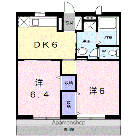 | 間取り詳細 | K(5帖)、洋室(6帖)、洋室(6帖) | ||