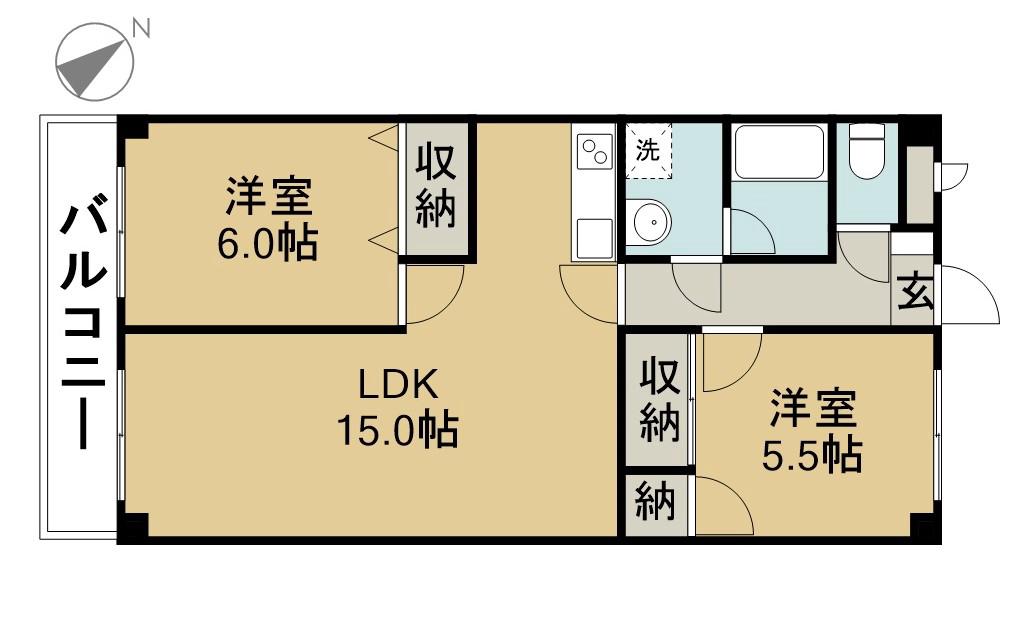 | 間取り詳細 | LDK(15帖)、洋室(6帖)、洋室(5.5帖) | ||