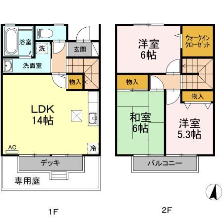 | 間取り詳細 | LDK(14帖)、和室(6帖)、洋室(5.3帖)、洋室(6帖) | ||