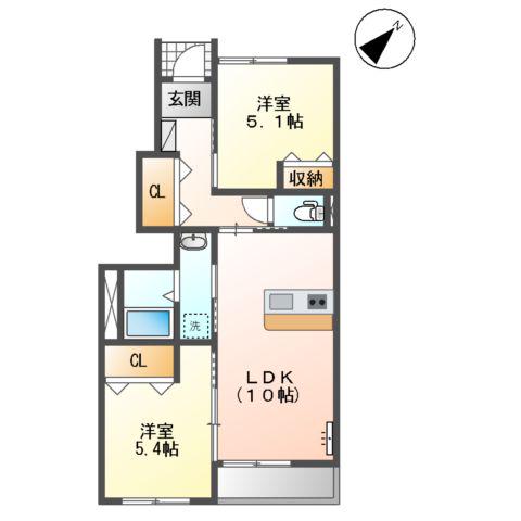 | 間取り詳細 | LDK(10帖)、洋室(5.4帖)、洋室(5.1帖) | ||