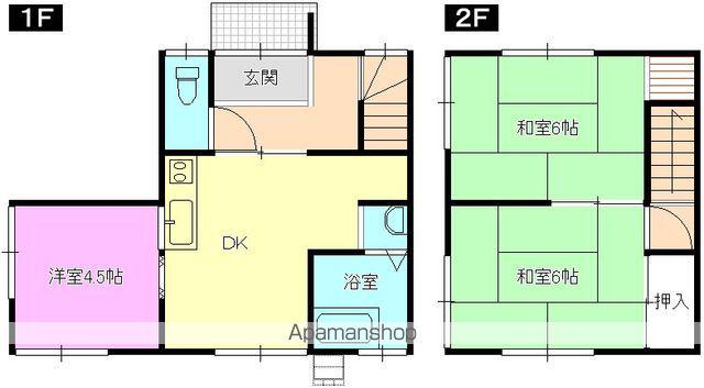 | 間取り詳細 | 和室(6帖)、和室(6帖)、洋室(4.5帖)、DK(6帖) | ||