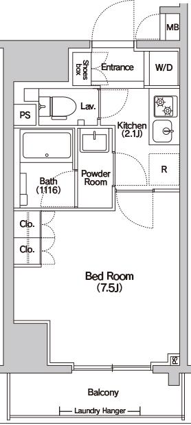 | 間取り詳細 | 洋室(7.5帖)、K(2.1帖) | ||