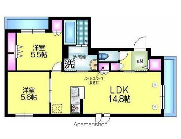 | 間取り詳細 | LDK(14.8帖)、洋室(5.6帖)、洋室(5.5帖) | ||