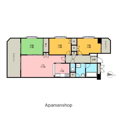 | 間取り詳細 | LDK(10.9帖)、洋室(5.6帖)、洋室(5.9帖)、和室(6帖) | ||