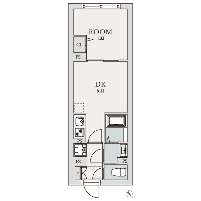 | 間取り詳細 | 洋室(4.3帖)、DK(6.1帖) | ||