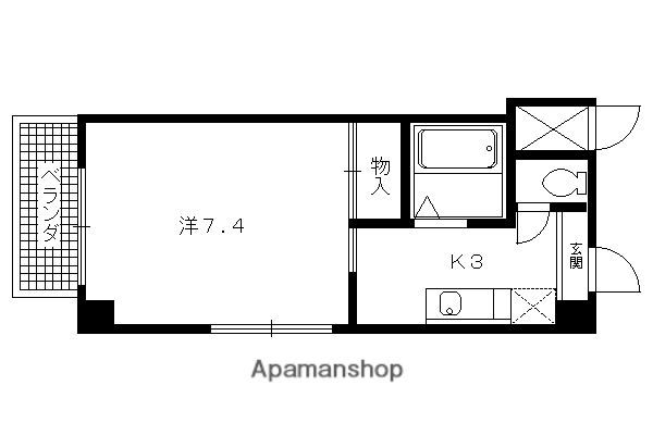 | 間取り詳細 | 洋室(7.4帖)、K(3帖) | ||