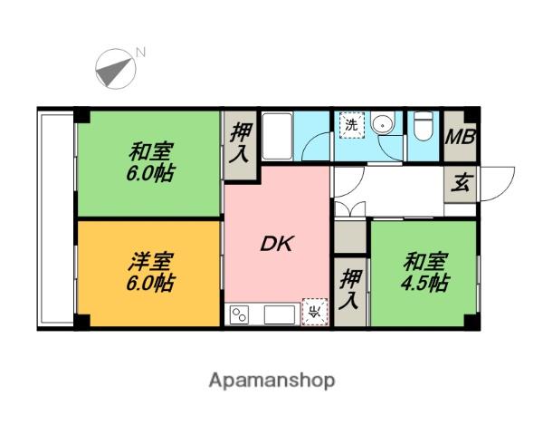 | 間取り詳細 | 洋室(6帖)、和室(6帖)、和室(4.5帖)、DK(6帖) | ||