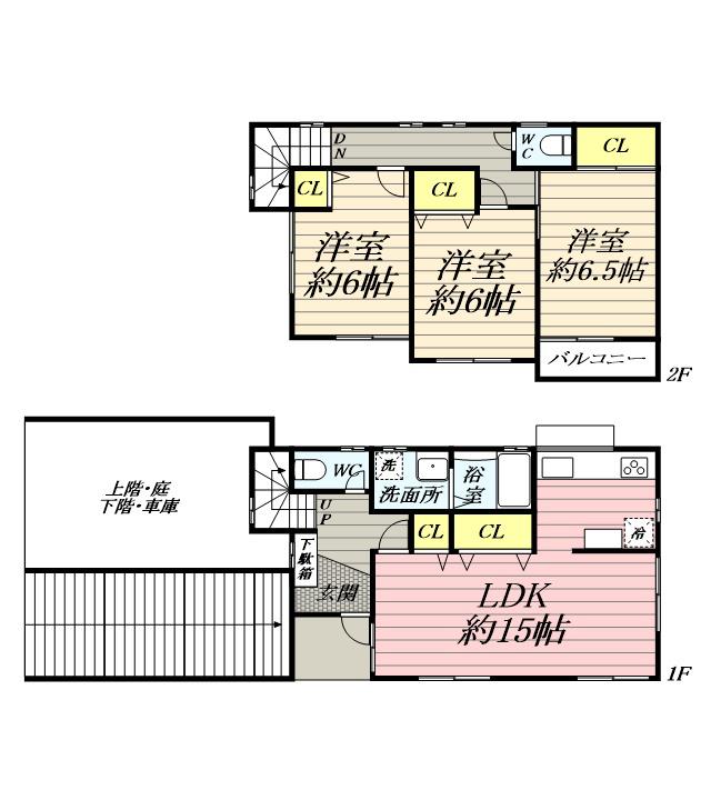 | 間取り詳細 | LDK(15帖)、洋室(6.5帖)、洋室(6帖)、洋室(6帖) | ||