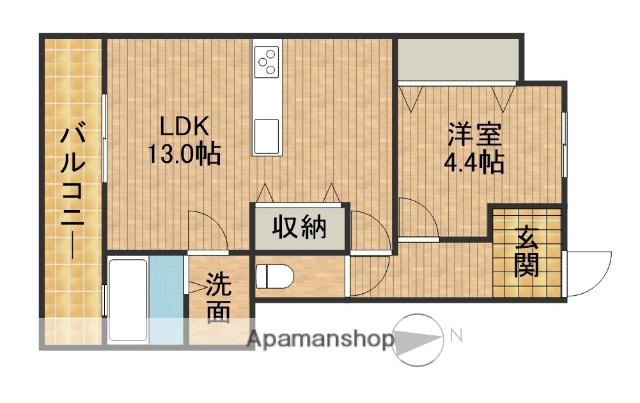 | 間取り詳細 | 洋室(4.4帖)、LDK(13帖) | ||
