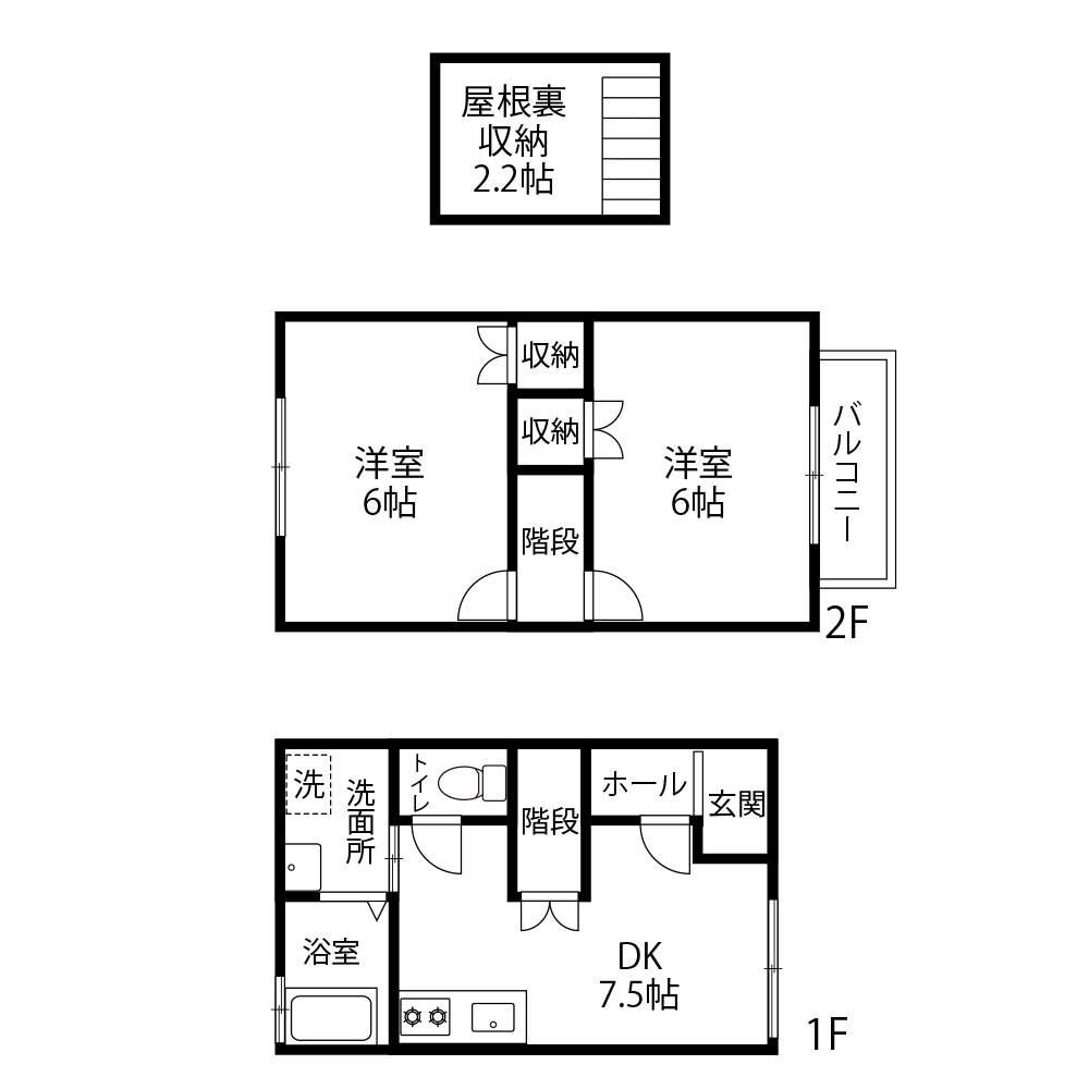 | 間取り詳細 | 洋室(6帖)、洋室(6帖)、DK(7.5帖) | ||