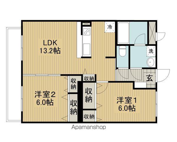 | 間取り詳細 | LDK(13.2帖)、洋室(6帖)、洋室(6帖) | ||