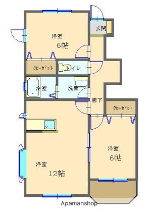 | 間取り詳細 | LDK(12帖)、洋室(6帖)、洋室(6帖) | ||