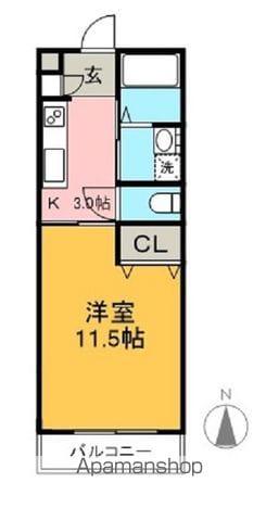 | 間取り詳細 | K(3帖)、洋室(11.5帖) | ||