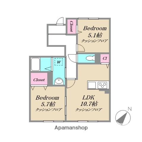 | 間取り詳細 | 洋室(5.7帖)、洋室(5.1帖)、LDK(10.7帖) | ||
