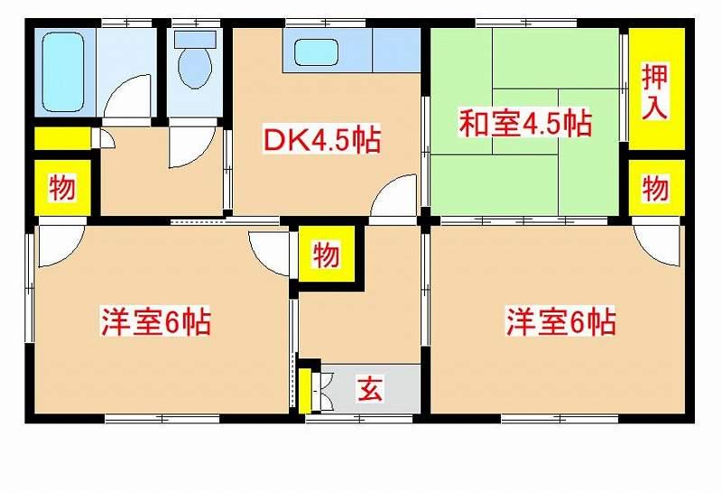 | 間取り詳細 | DK(4.5帖)、洋室(6帖)、洋室(6帖)、和室(4.5帖) | ||