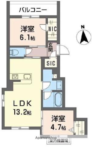 | 間取り詳細 | LDK(13.2帖)、洋室(6.1帖)、洋室(4.7帖) | ||