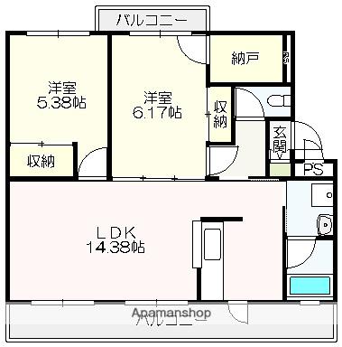 | 間取り詳細 | LDK(14.3帖)、洋室(6.1帖)、洋室(5.3帖) | ||