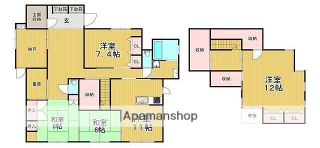 | 間取り詳細 | LDK(11帖)、洋室(7.4帖)、和室(6帖)、和室(8帖)、洋室(12帖) | ||