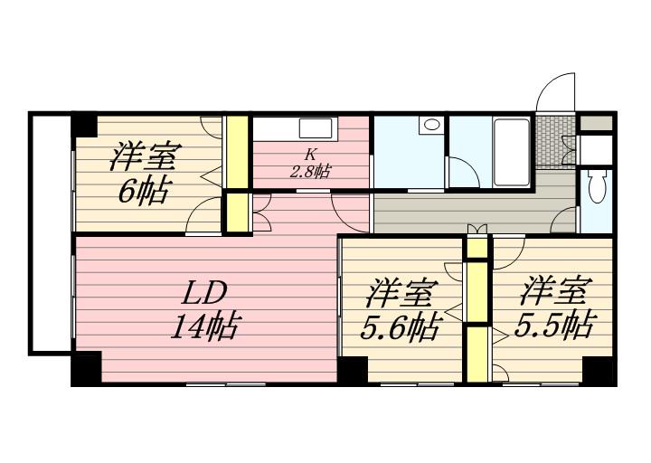 | 間取り詳細 | LD(14帖)、K(2.8帖)、洋室(5.6帖)、洋室(5.5帖)、洋室(6帖) | ||