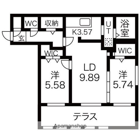 | 間取り詳細 | 洋室(5.5帖)、K(3.5帖)、LD(9.9帖)、洋室(5.7帖) | ||