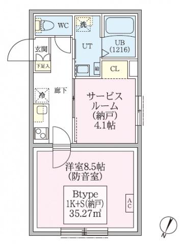 | 間取り | 1DK | 専有面積 | 35.11m2 |