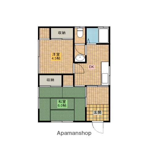 | 間取り詳細 | DK(6帖)、和室(6帖)、洋室(4.5帖) | ||
