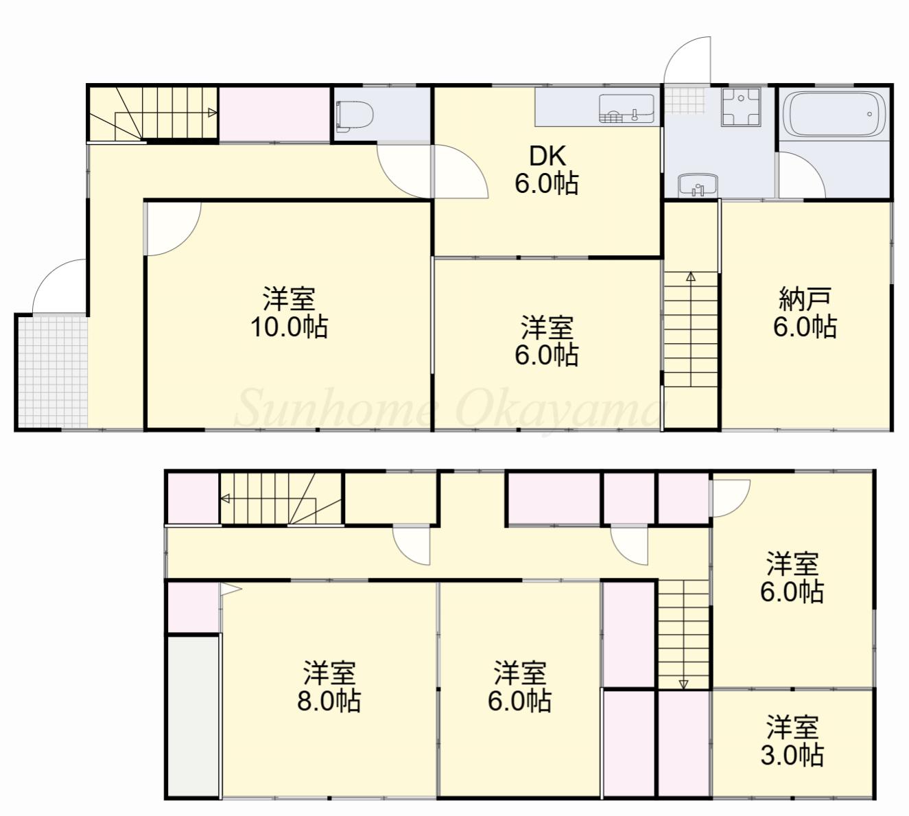 | 間取り詳細 | DK(6帖)、洋室(10帖)、洋室(8帖)、洋室(6帖)、洋室(6帖)、洋室(6帖)、洋室(3帖) | ||