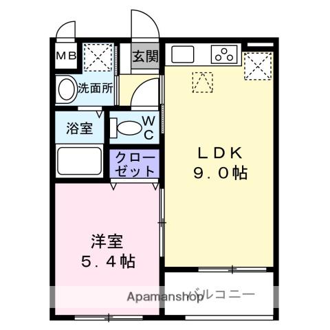| 間取り詳細 | LDK(9帖)、洋室(5.4帖) | ||