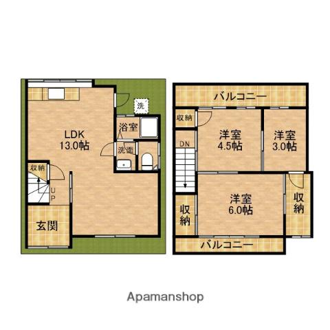 | 間取り詳細 | LDK(13帖)、洋室(6帖)、洋室(4.5帖)、洋室(3帖) | ||
