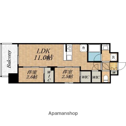 | 間取り詳細 | LDK(11帖)、洋室(2.5帖)、洋室(2.6帖) | ||