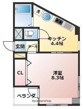 | 間取り詳細 | 洋室(8.3帖)、K(4.4帖) | ||