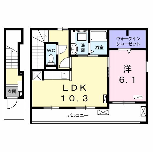 | 間取り詳細 | 洋室(6.1帖)、LDK(10.3帖) | ||