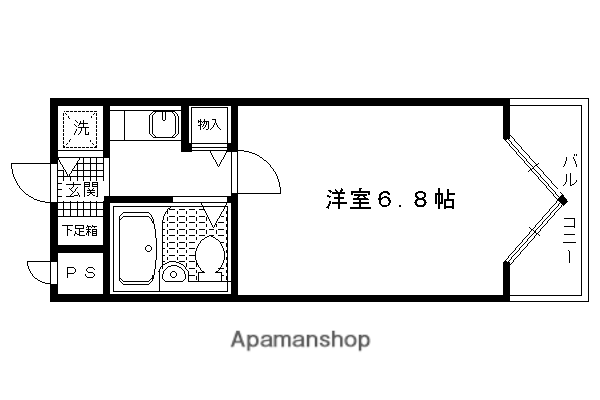 | 間取り詳細 | 洋室(6.8帖)、K(2帖) | ||