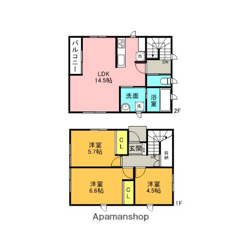 | 間取り詳細 | LDK(14.5帖)、洋室(6.6帖)、洋室(5.7帖)、洋室(4.5帖) | ||