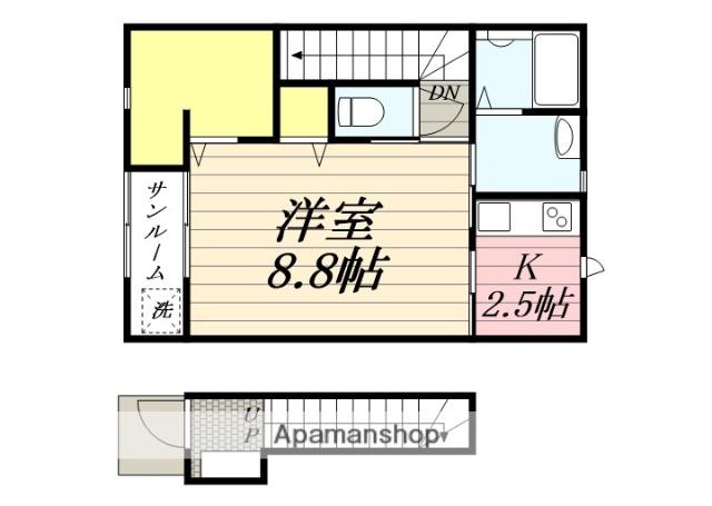 | 間取り詳細 | 洋室(8.8帖)、K(2.5帖) | ||
