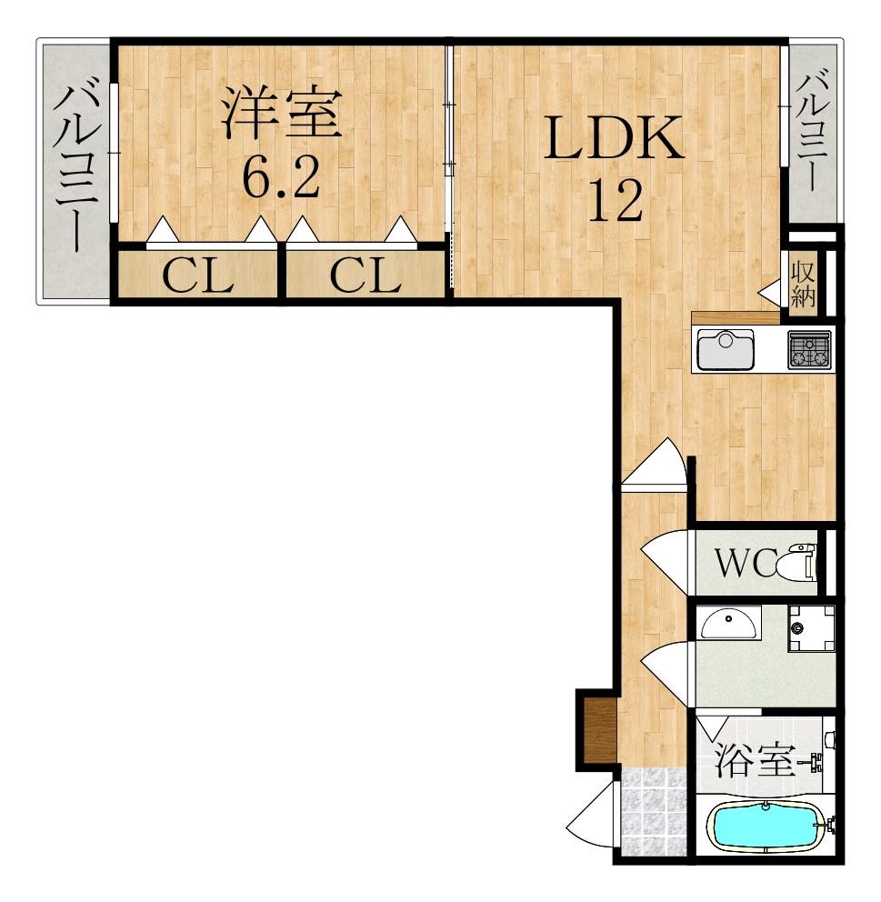 | 間取り詳細 | LDK(12帖)、洋室(6.2帖) | ||