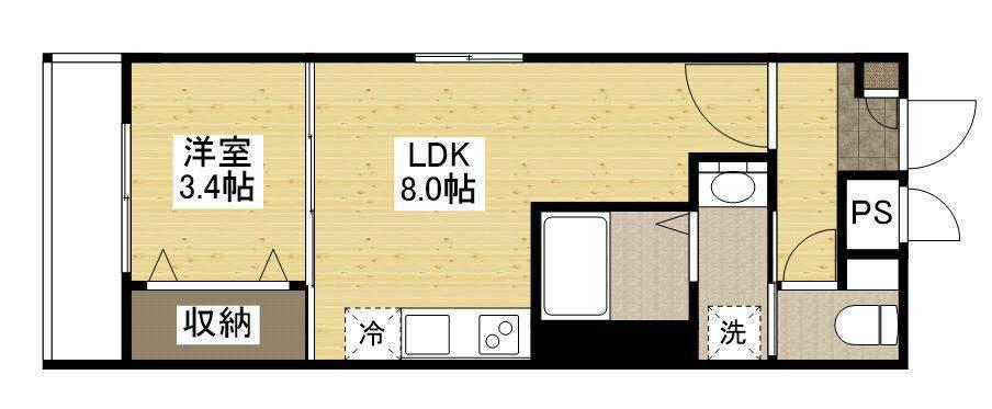 | 間取り詳細 | LDK(8帖)、洋室(3.4帖) | ||