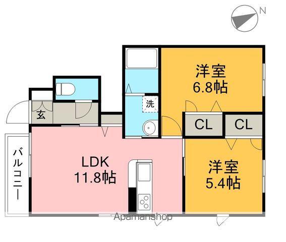| 間取り詳細 | LDK(11.8帖)、洋室(6.8帖)、洋室(5.4帖) | ||