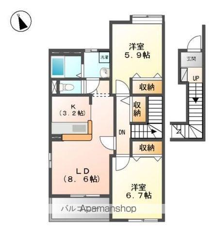アパート エバンスタウンコスモ AB(2DK/2階) | |||||||