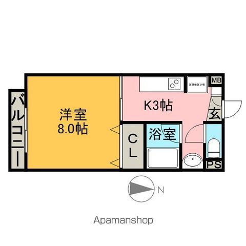 | 間取り詳細 | 洋室(8帖)、K(3帖) | ||