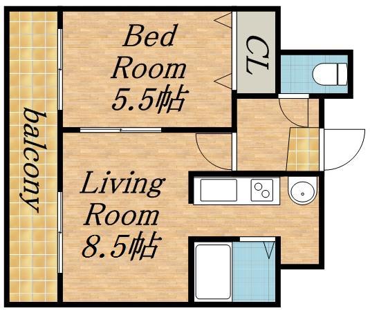 | 間取り詳細 | DK(8.5帖)、洋室(5.5帖) | ||