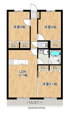 | 間取り詳細 | LDK(12.7帖)、洋室(6.1帖)、洋室(6帖)、洋室(6帖) | ||