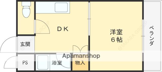 | 間取り | 1DK | 専有面積 | 22.05m2 |