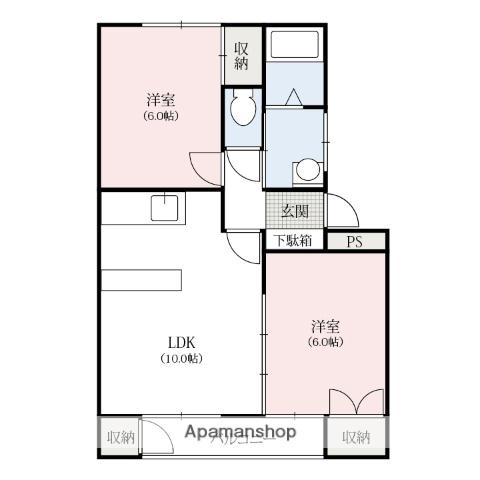 アパート カリーノ・ローザB(2DK/1階) | |||||||