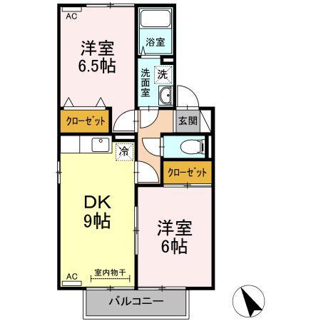 | 間取り詳細 | LDK(9帖)、和室(6帖)、洋室(6.5帖) | ||