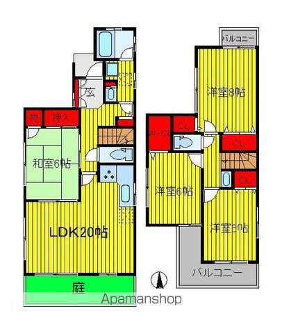 | 設備 | バス・トイレ別、テレビドアホン、ウォークインクローゼット、追い焚き、光ファイバー対応、システムキッチン、温水洗浄便座、角部屋、バルコニー、フローリング、床下収納、コンロ:ガス、シャワー、専用庭、給湯、洗濯機:室内、閑静な住宅街 | ||