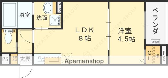 | 間取り詳細 | LDK(8帖)、洋室(4.5帖) | ||