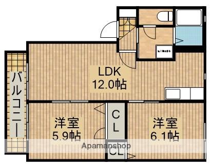 | 間取り詳細 | 洋室(5.9帖)、洋室(6.1帖)、LDK(12帖) | ||