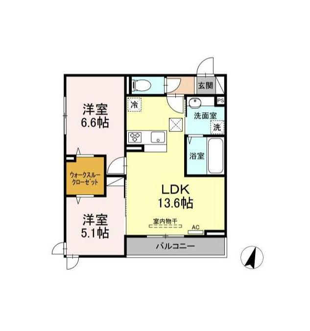 | 間取り詳細 | LDK(13.6帖)、洋室(6.6帖)、洋室(5.1帖) | ||