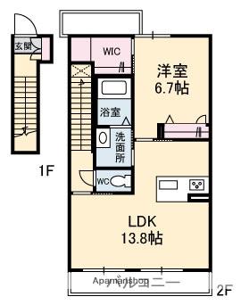 | 間取り詳細 | LDK(13.8帖)、洋室(6.7帖) | ||